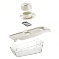 - Set Includes: Slicer body, container, safety hand guard, 6 blades