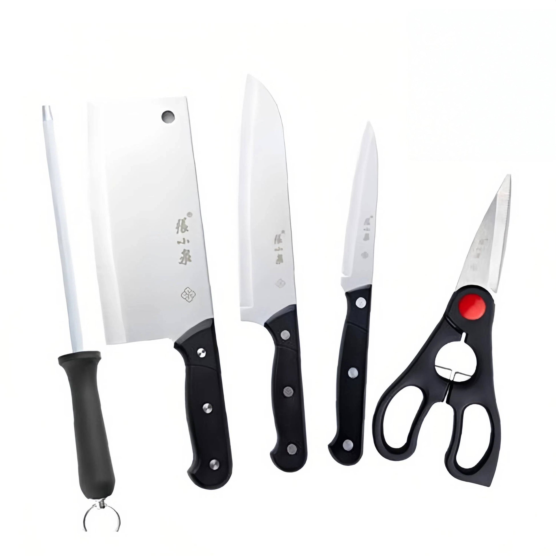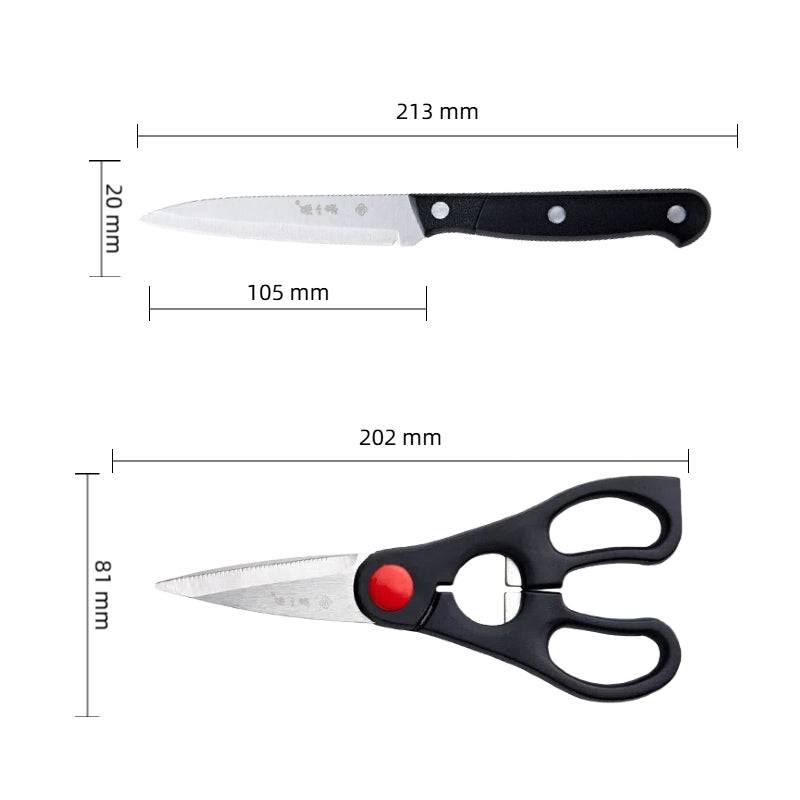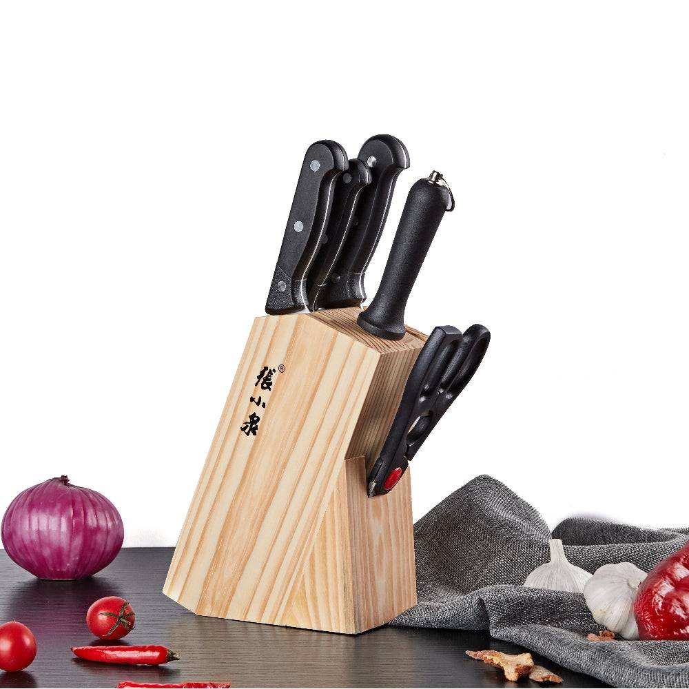 - 套装包含:切片刀、厨师刀、水果刀、厨房剪、磨刀棒和木质刀座。
